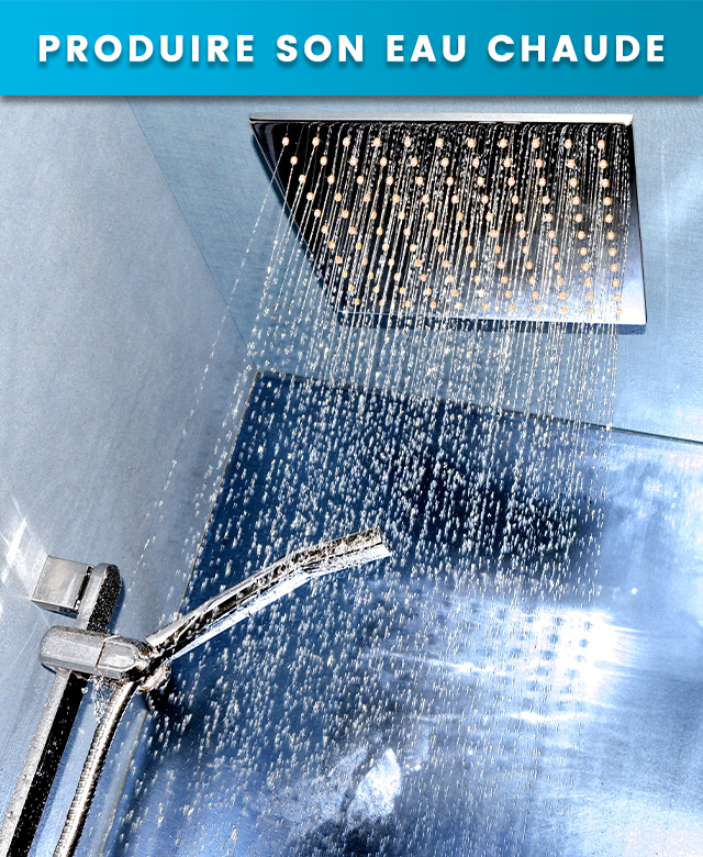 Produisez efficacement, durablement et en quantité importante votre propre eau chaude sanitaire via un système d'auto-consammation alimenté par le rayonnement solaire et permettant d'accumuler de l'eau déja préchauffée dans votre réservoire.
